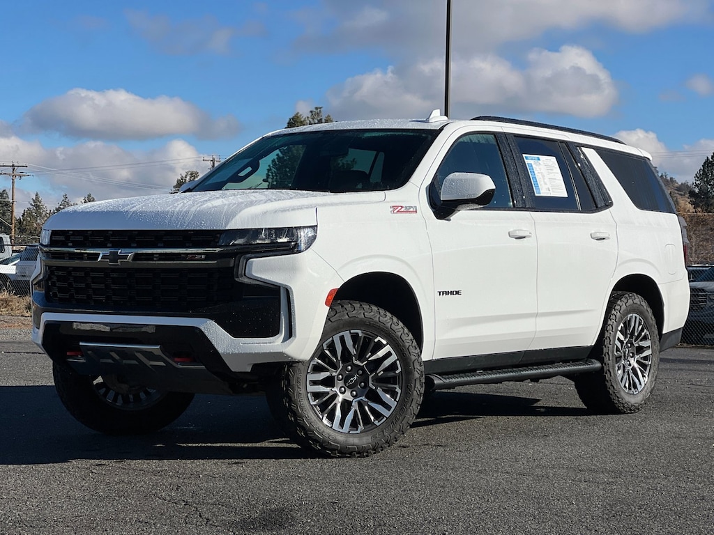 Certified. Summit White 2022 Chevrolet Tahoe Z71 4WD 10-Speed Automatic with Overdrive EcoTec3 5.3L V8 4WD, Black Leather, 1st & 2nd Row Color-Keyed Carpeted Floor Mats, 2-Speed Active Electronic AutoTrac Transfer Case, Auto-Dimming Inside Rear-View Mirror, Automatic Stop/Start, Black Tubular Assist Steps, Bose 9-Speaker Stereo Audio System Feature, Bright Front & Rear Door Sill Plates, Color-Keyed Carpeting Floor Covering, Driver & Front Outboard Passenger Airbags, Enhanced Driver Information Center, Floor Console w/Storage Area, Front High-Approach Angle Fascia, Hands-Free Rear Power Programmable Liftgate, Hill Descent Control, Infotainment Display, Leather-Wrapped Steering Wheel, LED Daytime Running Lamps, Memory Settings for Driver, Preferred Equipment Group 2Z7, Red Horizontal-Mounted Recovery Hooks, Remote Start, SiriusXM Radio w/360L, Start/Stop System Disable Button, Universal Home Remote, Wireless Charging.