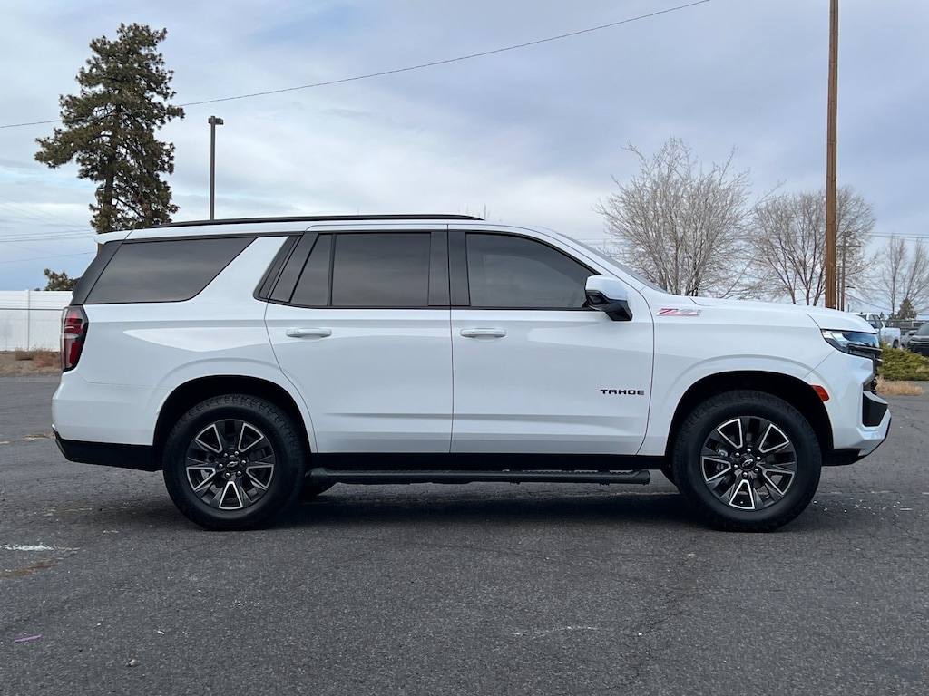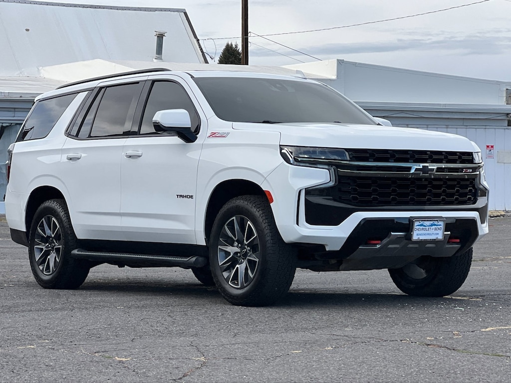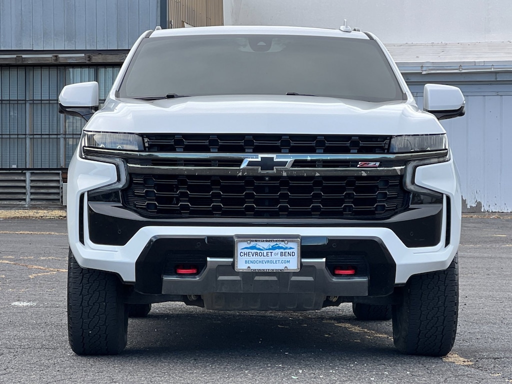 Summit White 2021 Chevrolet Tahoe Z71 4WD 10-Speed Automatic with Overdrive EcoTec3 5.3L V8 4WD, Black Leather, 1st & 2nd Row Color-Keyed Carpeted Floor Mats, 2 USB Data Ports, 2-Speed Active Electronic AutoTrac Transfer Case, Auto-Dimming Inside Rear-View Mirror, Black Tubular Assist Steps, Bright Front & Rear Door Sill Plates, Color-Keyed Carpeting Floor Covering, Driver & Front Outboard Passenger Airbags, Dual-Pane Power Panoramic Sunroof, Floor Console w/Storage Area, Front High-Approach Angle Fascia, Hands-Free Rear Power Programmable Liftgate, HD Radio, Hill Descent Control, Infotainment Display, Leather-Wrapped Steering Wheel, LED Daytime Running Lamps, Luxury Package, Max Trailering Package, Memory Settings for Driver, Preferred Equipment Group 2Z7, Red Horizontal-Mounted Recovery Hooks, Remote Start, SiriusXM Radio w/360L, Universal Home Remote, Z71 Signature Package (DISC).