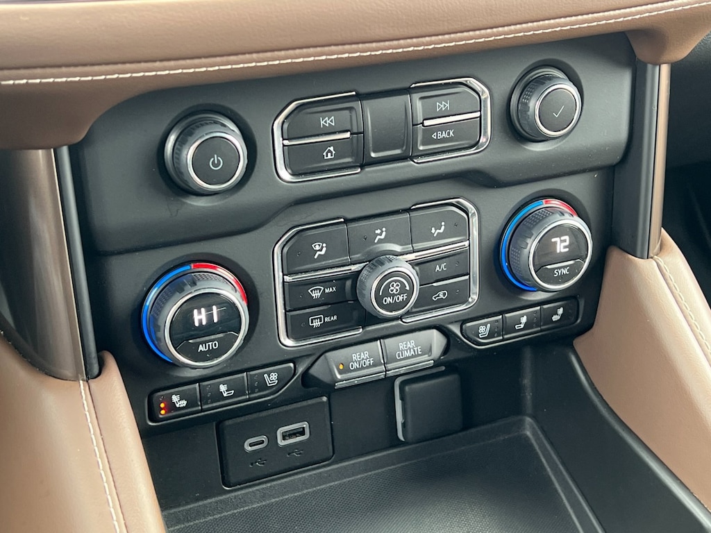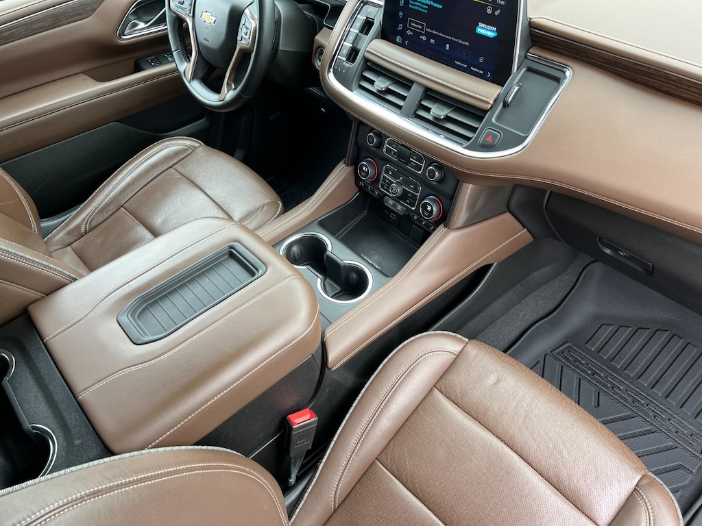 Beige 2023 Chevrolet Tahoe High Country 4WD 10-Speed Automatic with Overdrive 3.0L I6 4WD, Gideon/Very Dark Atmosphere Leather, Adaptive suspension, Bose 10-Speaker Centerpoint Surround Audio Sys Ft, Enhanced Driver Information Center, Hands-Free Rear Power Programmable Liftgate, Heads-Up Display, Heated front seats, Heated rear seats, Magnetic Ride Control Suspension, Navigation System, Spoiler, Universal Home Remote.