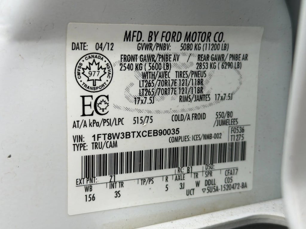 White Platinum Metallic Tri-Coat 2012 Ford F-350SD XLT 4WD TorqShift 6-Speed Automatic with Overdrive Power Stroke 6.7L V8 DI 32V OHV Turbodiesel 4WD, ABS brakes, Alloy wheels, Electronic Stability Control, Heated door mirrors, Illuminated entry, Low tire pressure warning, Remote keyless entry, Traction control.