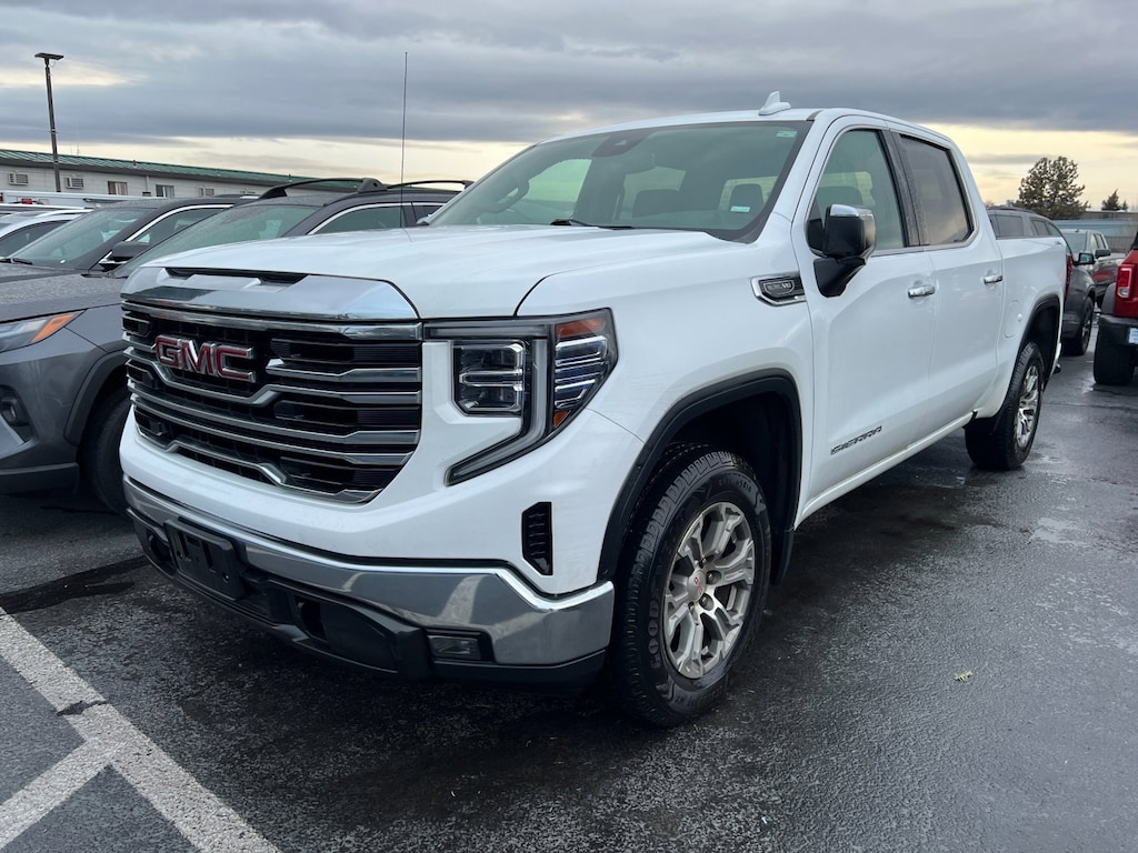 Summit White 2024 GMC Sierra 1500 SLT 4WD 10-Speed Automatic EcoTec3 5.3L V8 10-Speed Automatic, 4WD, Black Leather, 10-Way Power Driver Seat Adjuster w/Lumbar, 10-Way Power Passenger Seat Adjuster w/Lumbar, 120-Volt Interior Power Outlet, 170 Amp Alternator, 2 Charge/Data USB Ports, 2 Type-C Charge-Only Rear USB Ports, 6-Speaker Audio System Feature, Auto-Locking Rear Differential, Auxiliary External Transmission Oil Cooler, Chrome Header & Chrome Grille Insert Bars, Color-Keyed Carpeting Floor Covering, Deep-Tinted Glass, Electric Rear-Window Defogger, Front Frame-Mounted Black Recovery Hooks, Front Rain-Sensing Wipers, GMC Connected Access Capable, HD Rear Vision Camera, Heated front seats, Heated steering wheel, Hitch Guidance, Keyless Open & Start, LED Cargo Area Lighting, Manual Tilt-Wheel & Telescoping Steering Column, Navigation System, OnStar & GMC Connected Services Capable, Perimeter Lighting, Power Door Locks, Power Front Passenger Windows w/Express Up/Down, Power Front Windows w/Driver Express Up/Down, Power Rear Windows w/Express Down, Preferred Equipment Group 4SA, Push Button Start, Rear Wheelhouse Liners, Remote Vehicle Starter System, SiriusXM w/360L, Steering Wheel Audio Controls, Theft Deterrent System (Unauthorized Entry), Trailering Package, Wi-Fi Hotspot Capable. One owner local vehicle.