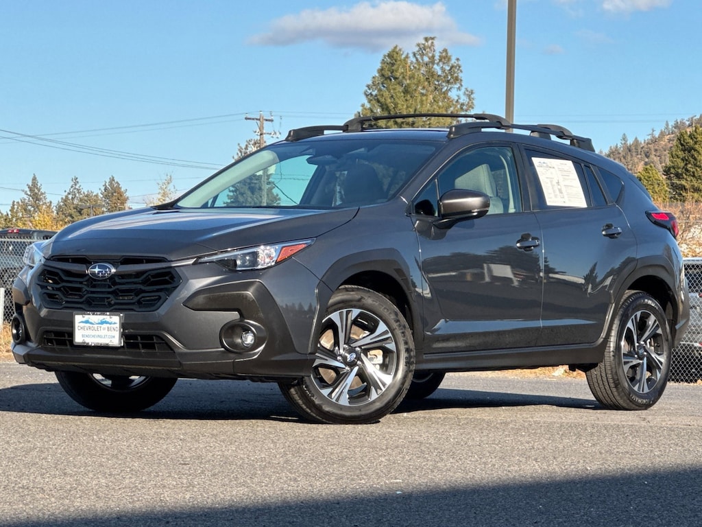Magnetite Gray Metallic 2024 Subaru Crosstrek Premium AWD Lineartronic CVT 2.0L 4-Cylinder DOHC 16V 10-Way Power Driver's Seat, All-Weather Package, Auto-Dimming Exterior Mirror w/Approach Light, Auto-Dimming Mirror w/Compass & HomeLink, Blind Spot Detection w/Rear Cross-Traffic Alert, BSD/RCTA & Moonrf & All Weather Pkg & Pwr Dr. Seat, Crosstrek Mirror Package, Heated Exterior Mirrors, Heated Front Seats, Heated Wipers, Power Moonroof.